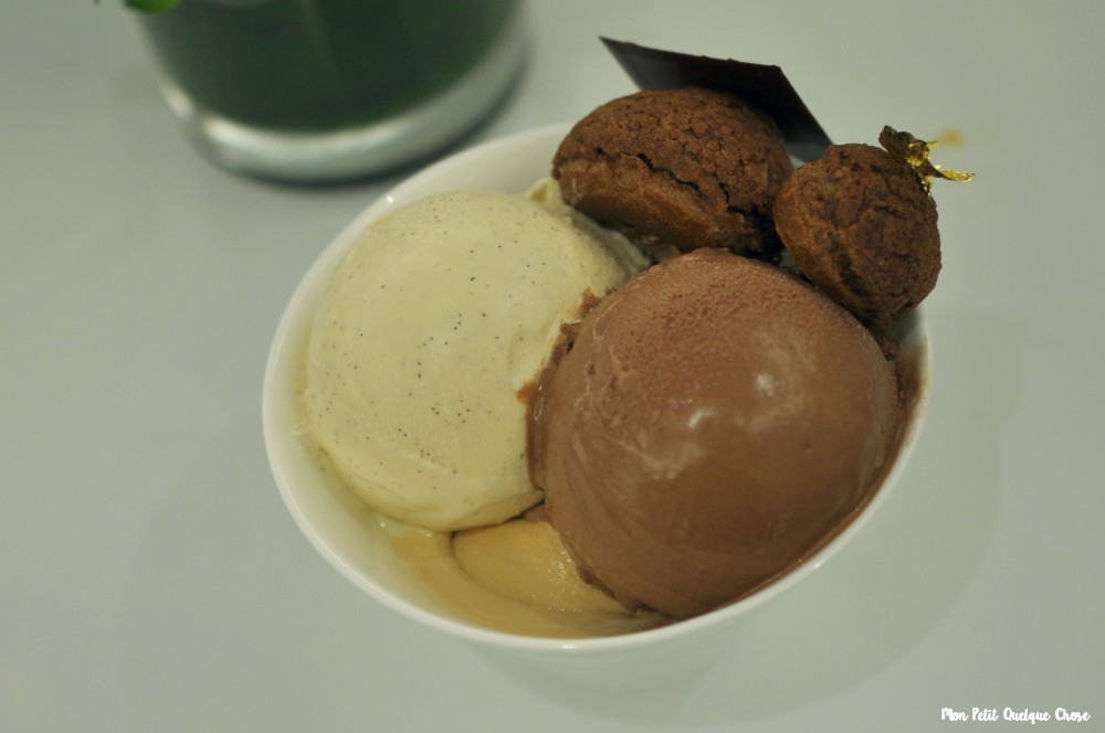 Nous avons débuté la soirée avec un cocktail au Lounge Bar puis nous sommes passés à la Brasserie du Royal pour notre repas. Note spéciale pour le hall qui mène à la Brasserie du Royal, en y passant nous sommes entourés par les armoires à vins, à fromages et à charcuterie de l’hôtel. C’est une touche unique et très belle! Le souper était juste parfait! Je ne suis pas une experte en gastronomie et ne saurais pas forcément bien vous décrire le tout, je vous laisse avec mes photos d’amatrice!