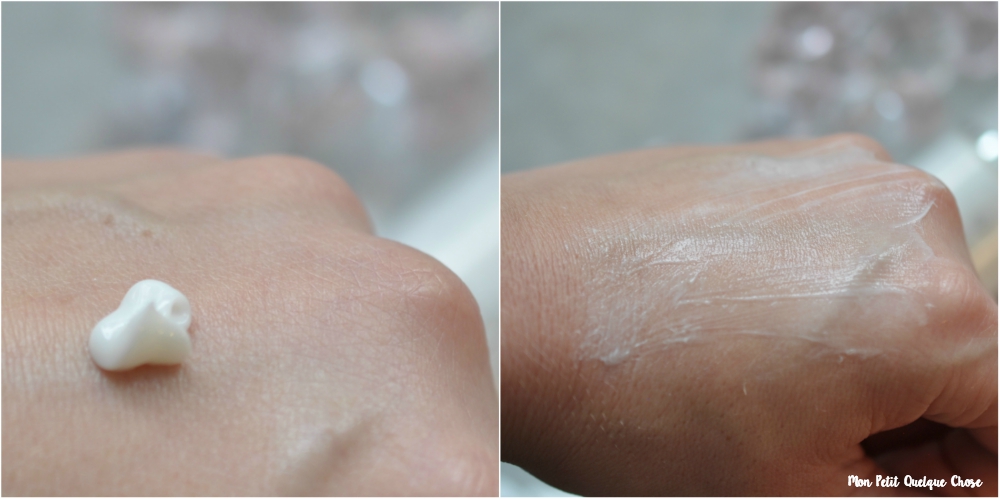 Le crème en elle-même est légère et fluide. J’en utilise l’équivalent de deux pompes pour le visage et le cou. Elle s’applique confortablement, son odeur est légèrement mentholée. Elle sent la « vraie menthe » fraîche, celle que l’on vient de cueillir.