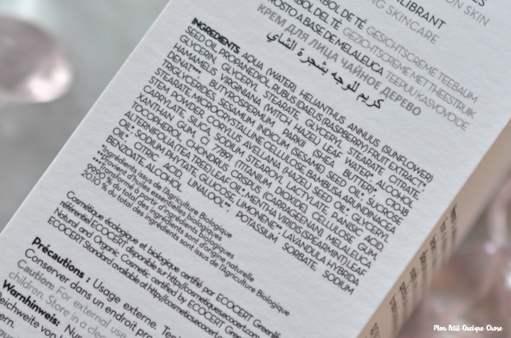 Je trouve que c’est une crème de jour agréable. Elle nourrit et hydrate bien ma peau. Elle est moins riche que la Crème visage Lotus Sacré de la même marque. Cependant, ma peau n’absorbe pas totalement ce soin rééquilibrant. Après l’avoir appliqué, j’attends une dizaine de minutes et j’absorbe l’excès avec un mouchoir avant de me maquiller. Je n’ai pas forcément remarqué de différence quant à ma zone T et la régulation de sébum ; je pense que ceci est résultat qui s’observera sur le long terme. Ma peau est confortable, nourrie et hydratée ; ceci perdure sur la journée.