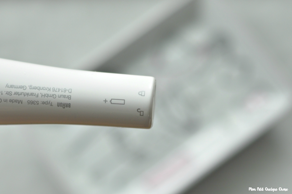 Le corps de la brosse, l’emplacement pour les piles, le bouton de mise en marche