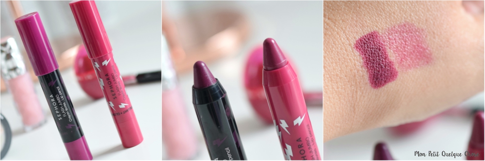 Les Flash Jumbo sont des crayons à lèvres. Sudden Plum est un prune mat et opaque. Sa tenue sur les lèvres est bonne mais ce n’est pas un mat qui se fixe et sèche. Purple Spirit tient plus du gloss. Du reste, le Kiss Me Gloss dont je vous parlais ci-dessus lui ressemble beaucoup. (CHF 12,90)