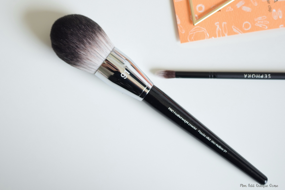Ce pinceau pour le visage est large et en forme d’œuf. Il est tout tout doux et très agréable à utiliser. Il ne perd pas ses poils, disperse bien la matière sur le visage pour un effet léger et homogène. Il est passablement lourd à tenir, on sent le pinceau de qualité. (CHF 25,90)